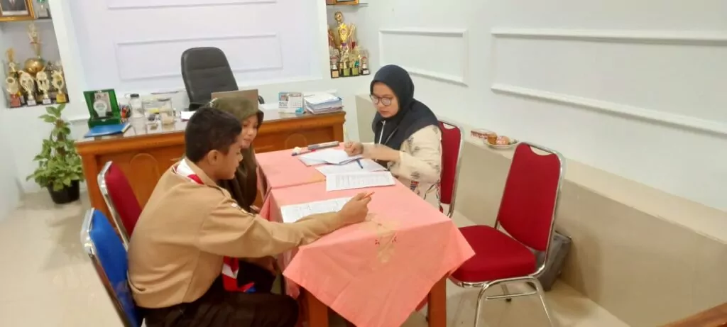 Padang, Humas – Kamis pagi (10/08) bertempat di Ruang Kepala Madrasah sedang dilaksanakan seleksi kelas digital bersama Psikolog Pendidikan, Risanita Fardian Farid, M.Psi., Psikolog dari Biro Layanan Psikologi, Narapsikologi. Dalam seleksi tersebut terdapat 42 calon siswa kelas digital bersama orang tua/wali yang akan mengikuti seleksi wawancara dan berharap dapat lolos.